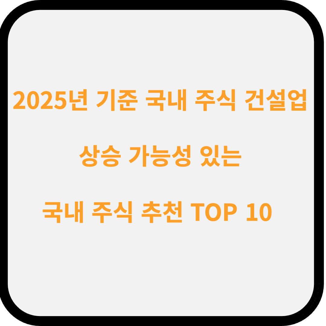 2025년 현재 한국 주식시장은 부동산 개발, 인프라 투자 확대, 친환경 건설 기술 등으로 인해 건설업 관련 주식이 주목받고 있습니다. 정부의 지속적인 주택 공급 정책, 스마트시티 개발, 해외 건설 수주 증가 등의 요소가 건설업계의 성장성을 뒷받침하고 있습니다. 이에 따라 상승 가능성이 높은 건설 관련 주식 10개를 선정하여 분석하였습니다.