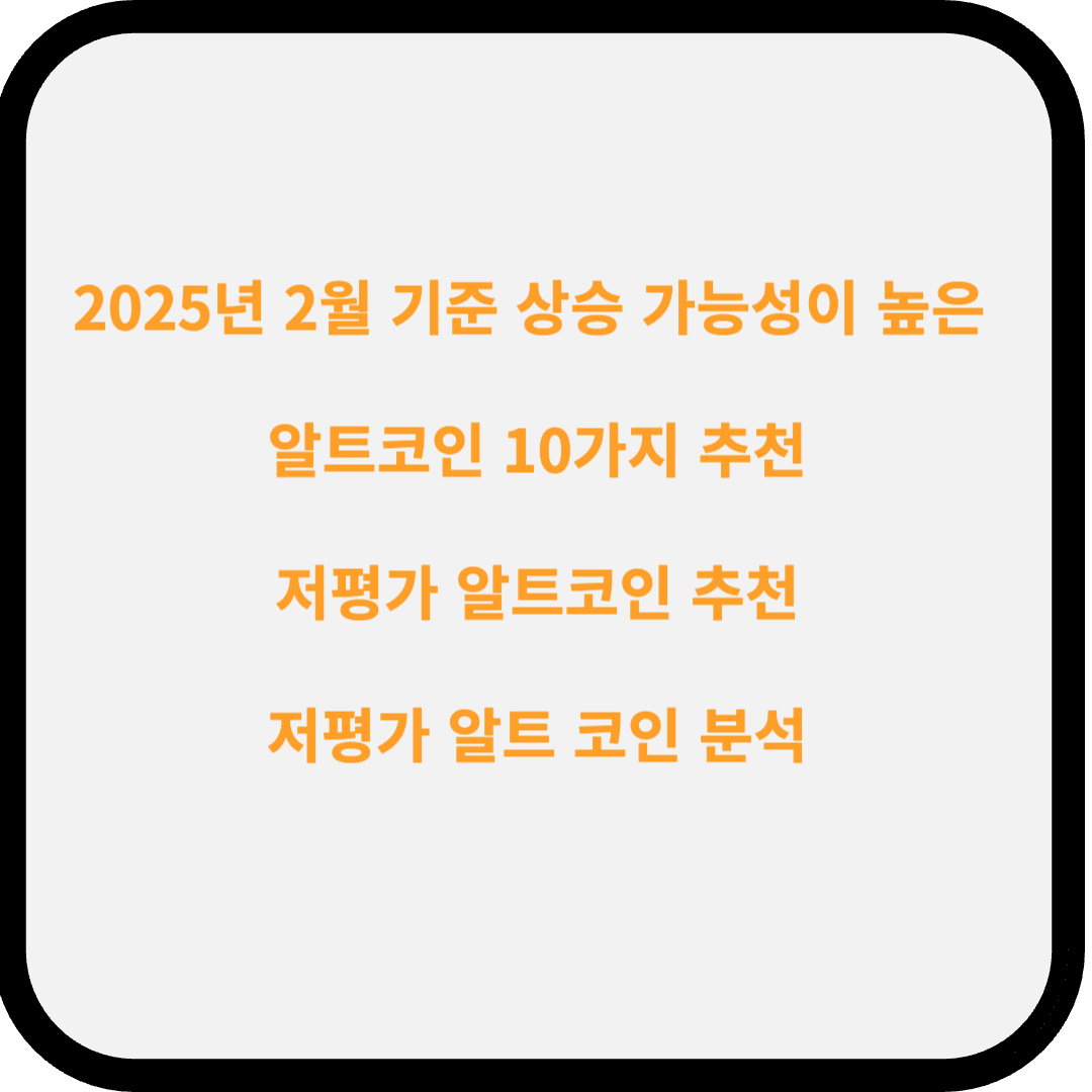 2025년 2월 현재 암호화폐 시장은 꾸준한 성장과 변동성을 동시에 겪고 있습니다. 비트코인이 여전히 시장을 주도하고 있지만, 알트코인 역시 다양한 기술적 혁신과 생태계 확장을 통해 주목받고 있습니다. 본 보고서에서는 2025년 2월 기준으로 상승 가능성이 높은 10개의 알트코인을 선정하여 분석하였습니다.
