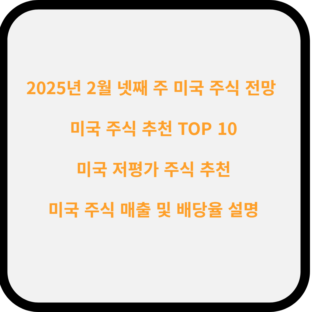 2025년 2월 넷째 주, 미국 주식 시장은 전 세계적으로 중요한 경제 지표와 함께 많은 투자자들의 주목을 받고 있습니다. 특히 테슬라, 애플, 마이크로소프트, 엔비디아와 같은 기업들은 그동안의 혁신적인 성과를 바탕으로 꾸준한 상승을 보여주고 있습니다. 이번 글에서는 2025년 현재, 그리고 앞으로 상승할 가능성이 큰 미국 주식 10개를 선정하여, 각 기업의 매출 상승률, 사업 방향, 주가 상승 요인, 예측 매출 및 순이익, 배당금 등을 상세히 분석하겠습니다. 이 분석을 통해 투자자들에게 유망한 투자 기회를 제공하고자 합니다.