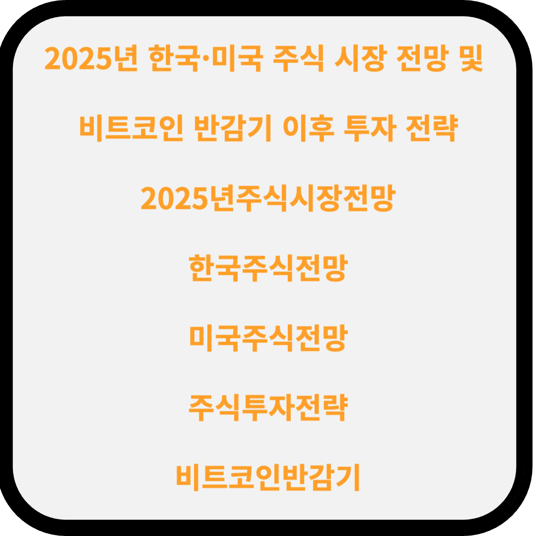 2025년 주식 및 코인 시장은 글로벌 경제 정책, 기술 발전, 산업 성장에 따라 변화할 것입니다.